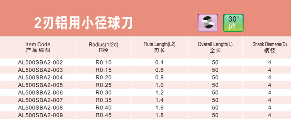 2刃微小徑球刀