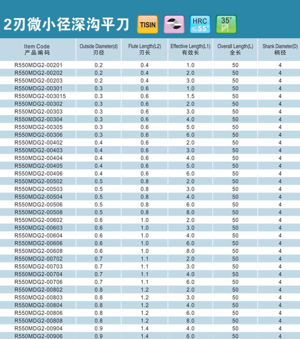 2刃微小徑深溝平刀